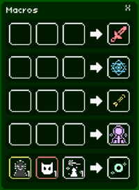After dragging skills into an empty slot in the Macros Area, you can then drag one of the Colored Macros Icons onto a hotbar.